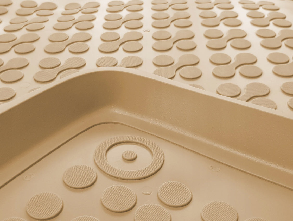 Set covorase auto fabricate in Polonia cu bordura inalta (tip tavita), realizate din cauciuc, cu rolul de a retine murdaria si lichidele prezente. Acestea sunt create dupa forma si dimensiunile fiecarei masini. Materialul din care sunt facute nu emana un miros neplacut in interiorul masinii si va asigura o calatorie placuta in interiorul autovehiculului dumeavoastra. Presurile dispun de butoni de fixare in mocheta autoturismului pentru o potrivire exacta in podeaua autovehiculului.Totodata, datorita calitatii chimice si a cauciucului moale din care sunt fabricate acestea asigura o curatare foarte usoara.
