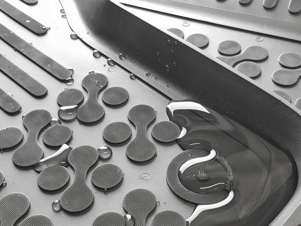 Presurile dispun de butoni de fixare in mocheta autoturismului pentru o potrivire exacta in podeaua autovehiculului.