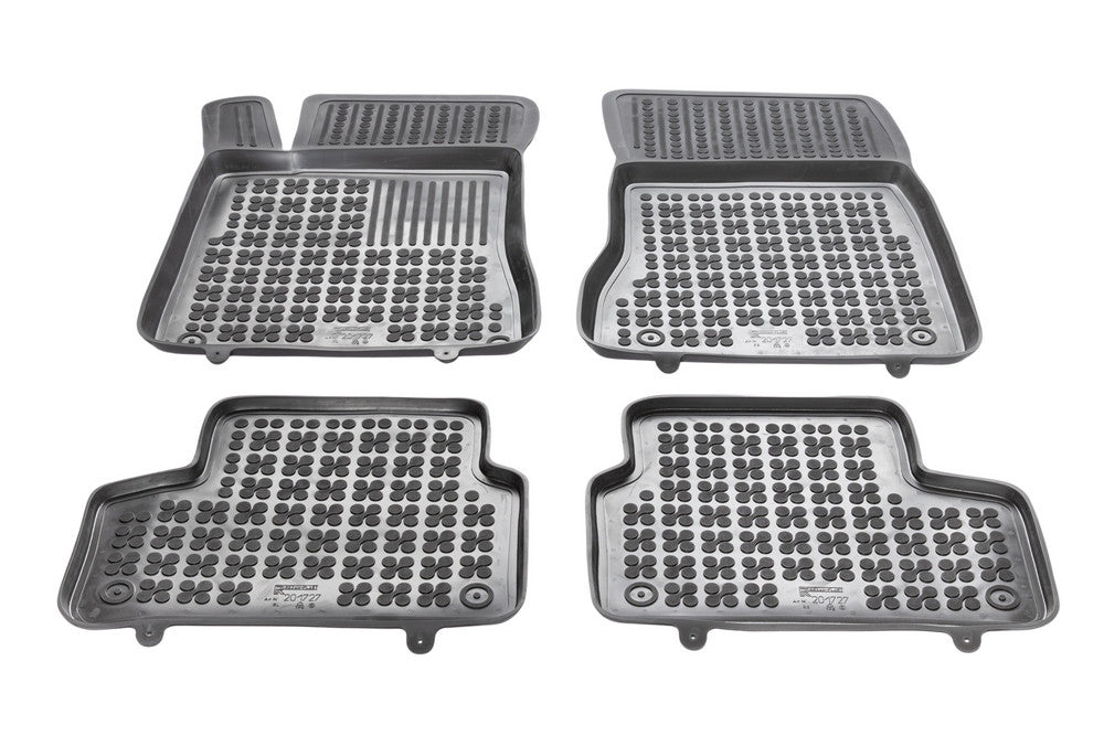 Set covorase auto fabricate in Polonia cu bordura inalta (tip tavita), realizate din cauciuc, cu rolul de a retine murdaria si lichidele prezente. Acestea sunt create dupa forma si dimensiunile fiecarei masini. Materialul din care sunt facute nu emana un miros neplacut in interiorul masinii si va asigura o calatorie placuta in interiorul autovehiculului dumeavoastra. Presurile dispun de butoni de fixare in mocheta autoturismului pentru o potrivire exacta in podeaua autovehiculului.Totodata, datorita calitatii chimice si a cauciucului moale din care sunt fabricate acestea asigura o curatare foarte usoara.