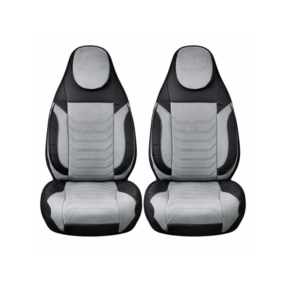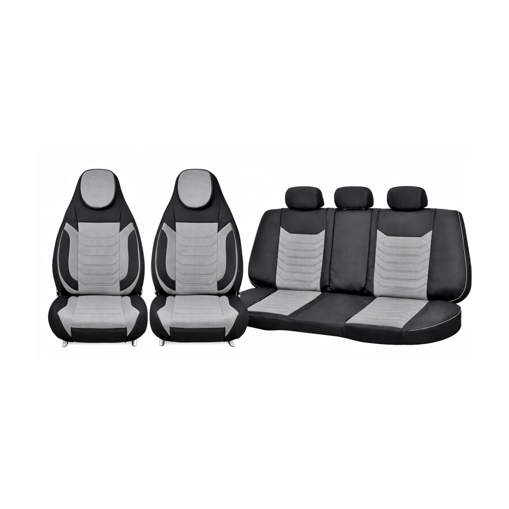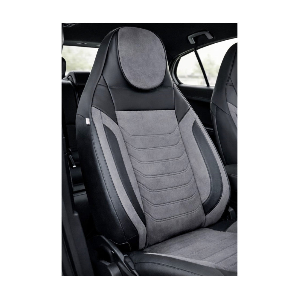 Huse scaune auto universale fractionate Premium cu tetiera fata incorporata negru cu gri